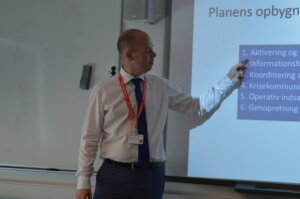 Eftermiddagen i Middelfart bød blandt andet på oplæg fra direktøren for Børn & Skole i Favrskov Kommune, Rasmus Møller, der fortalte om beredskabets koordinerende rolle i en konkret krisesituation i kommunen.