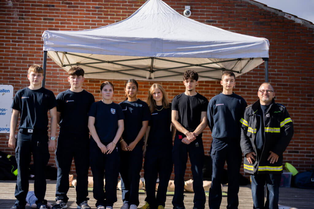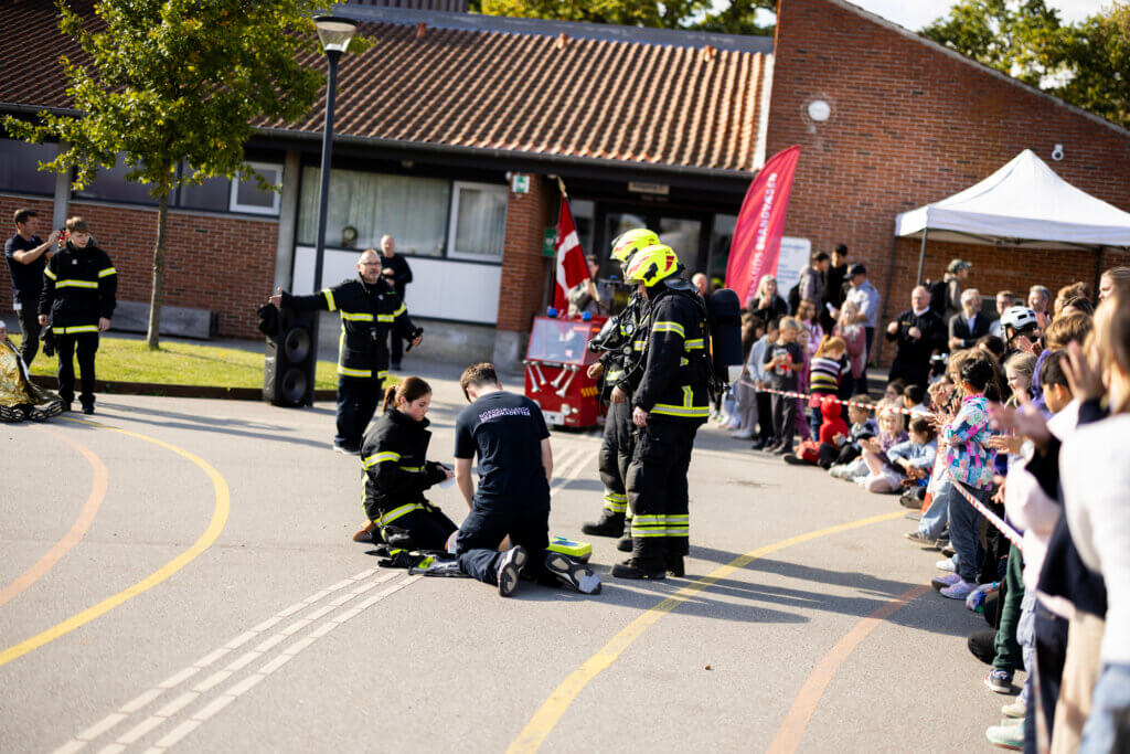 Besøget på Kokkedal Skole blev afsluttet i skolegården, hvor Nordsjællands Brandvæsens brandkadetter gav en demonstration af, hvordan de har lært at handle i en nødsituation, hvor liv og førlighed er på spil, for at være beredt handler om andet og mere end brandforebyggelse.