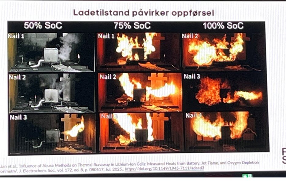 Dag 3 bød ligeledes på flere indlæg. Det første vi deltog i, var et indlæg omkring forskning. Her fortalte Ragni Fjellgard, seniorforsker RISE Fire Research om deres studie vedr. batteribrand, solceller og deres udvikling og udfordringer. Et spændende indlæg om ny viden om slukning og hvor meget state of charge på batteriet betyder som brandens intensitet. Hvis man vil søge mere viden, kan man kigge på deres hjemmeside.