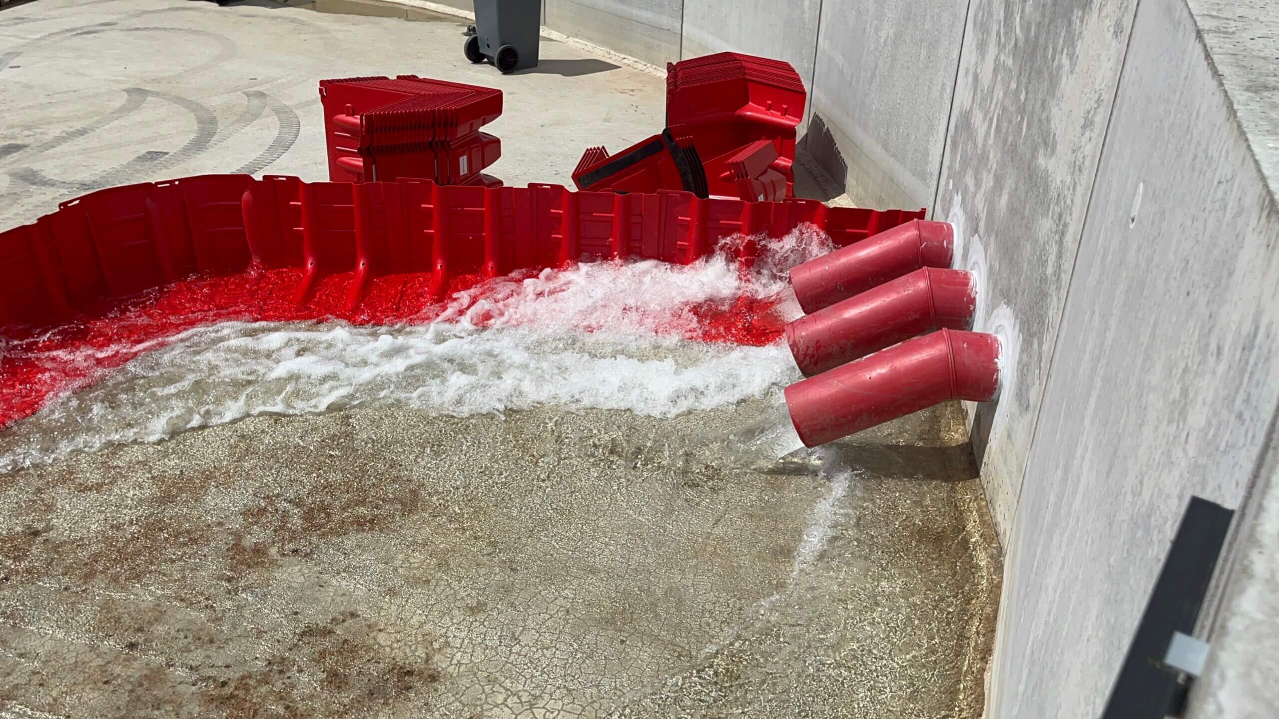 Helt konkret har man bag brandstationen i Roskilde bygget et bassin med en diameter på 20 meter og en højde på 180 cm, hvori der kan simuleres håndtering af forskellige oversvømmelsessituationer i et stort område, hvor man kan styre vandets rasen, hvilket giver gode muligheder for at træne vandberedskabet i et sikkert miljø.